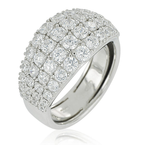 Anello a fascia in argento rodiato con pavè di zirconi bianchi della linea Artlinea. Mis.18.