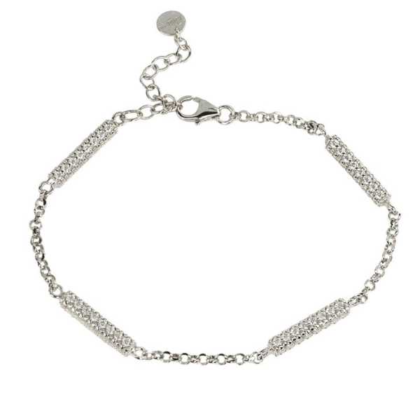 Bracciale in argento 925 con elementi in pavé di zirconi bianchi. Lunghezza 17cm