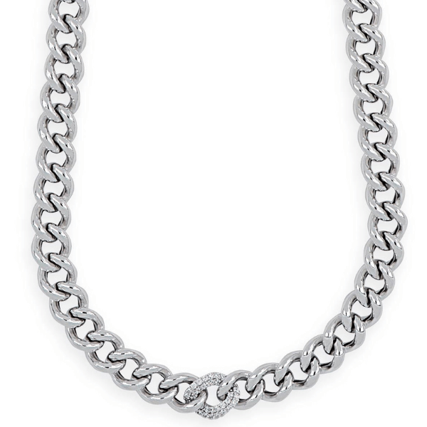 Collana a catena in argento rodiato e zirconi della linea Artlinea. Lunghezza: 45,5