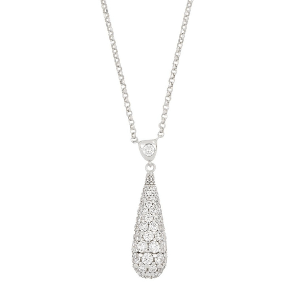 Collana in argento 925 con pendente a goccia in zirconi bianchi. Lunghezza 43cm.
