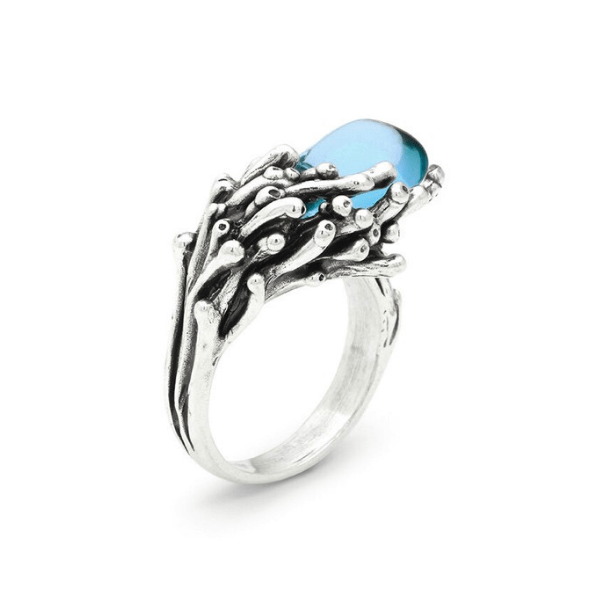 Anello goccia Oceano linea Giovanni Raspini. Collezione: gocce color. Materiale: Argento 925%.