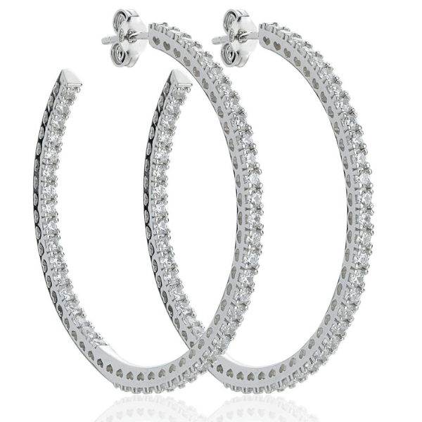 Orecchini a cerchio in argento e zirconi della linea Arlinea. Peso . 7,4 g. Avvolti 30 zirconi